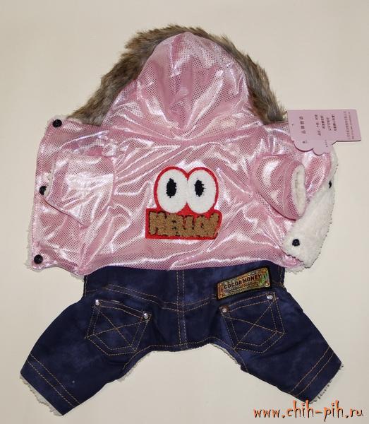 Модные теплые комбинезоны в виде блестящей курточки и джинсовых штанишек. На спинке яркий принт. Капюшон украшен искусственным мехом. Застегивается на три кнопки. Внутри искусственный мех. Два цвета: розовый и серый.