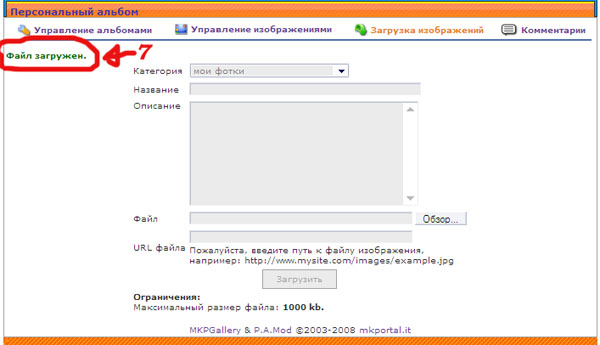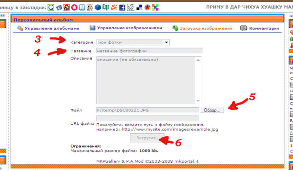 - В персональном меню перейти по ссылке "мои фотографии". Создать альбом и подкатегории в нем, по желанию.